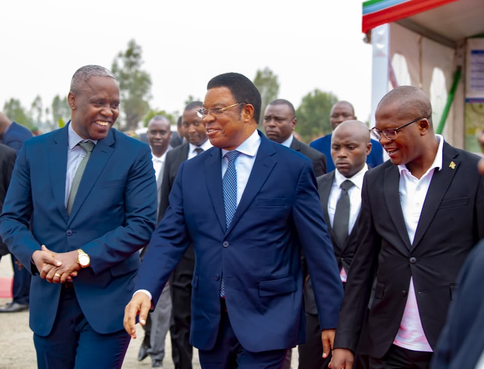 MHE. GELASIUS G. BYAKANWA, BALOZI WA TANZANIA NCHINI BURUNDI AKIWA KWENYE PICHA YA PAMOJA NA MHE. KASSIM MAJALIWA, WAZIRI MKUU WA TANZANIA WAKATI WA HAFLA YA UWEKAJI WA JIWE LA MSINGI.