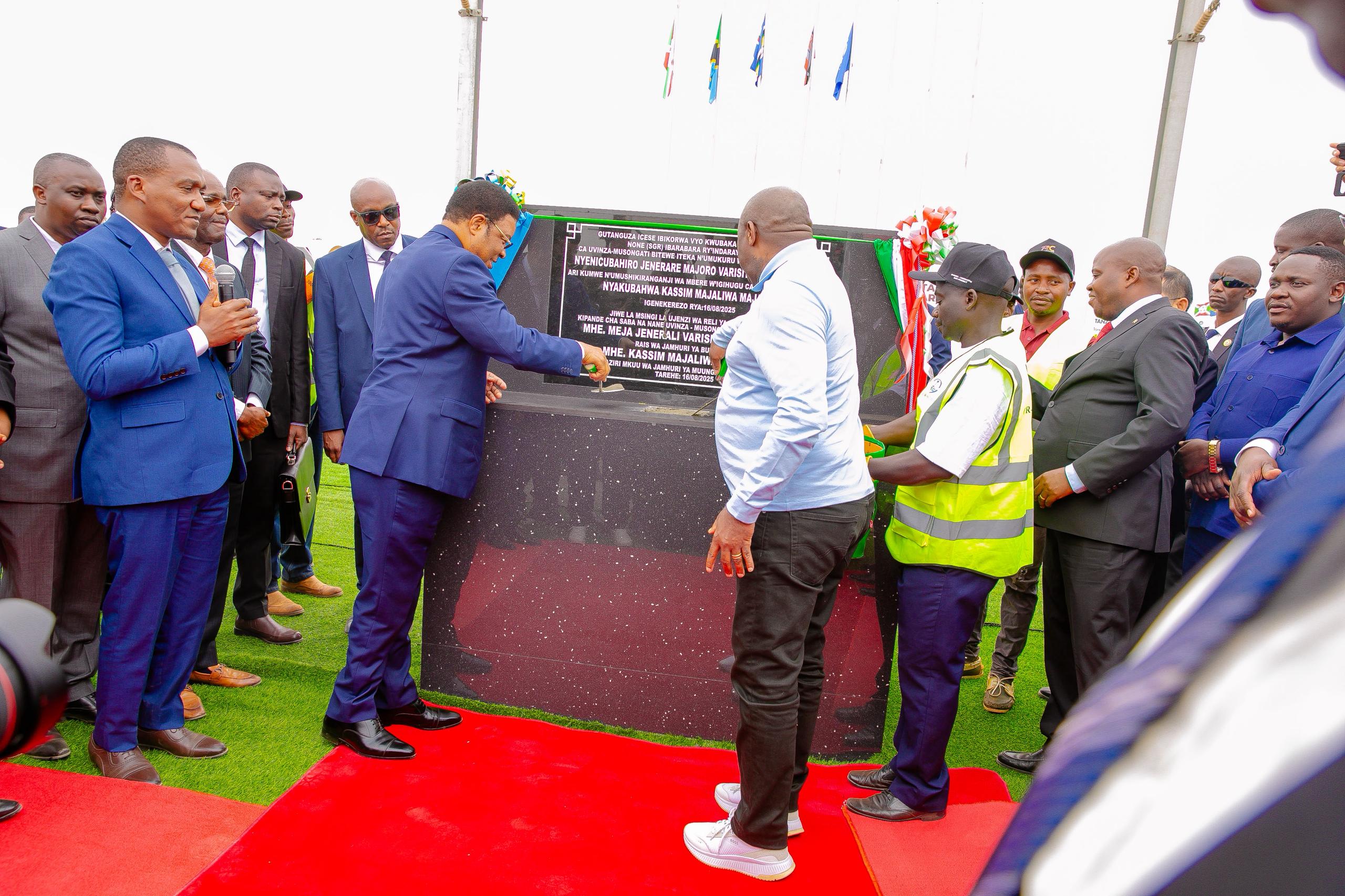 TAREHE 16.8.2025 TANZANIA NA BURUNDI ZILIWEKA JIWE LA MSINGI LA UJENZI WA RELI YA KISASA (SGR) INAYOZIUNGANISHA NCHI MBILI KWA KIPANDE CHA UVINZA - MSONGATI YENYE UREFU WA KILOMITA 300 AMBAPO KILOMITA 240 KATI YA HIZO NI NJIA KUU NA KILOMITA 60 NI NJIA ZA KUPISHANA. SHEREHE ZA UWEKAJI WA JIWE LA MSINGI ZILIFANYIKA NCHINI BURUNDI ENEO LA UJENZI MSONGATI. SHEREHE HIZO ZILIHUDHURIWA NA MAMIA YA WARUNDI WAKIONGOZWA NA MHE. EVARISTE NDAYISHIMIYE, RAIS WA JAMHURI YA BURUNDI AMBAYE ALIKUWA MGENI RASMI PAMOJA NA MHESHIMIWA KASSIM MAJALIWA MAJALIWA, WAZIRI MKUU WA JAMHURI YA MUUNGANO WA TANZANIA ALIYEMWAKILISHA MHE. DKT. SAMIA SULUHU HASSAN, RAIS WA JAMHURI YA MUUNGANO WA TANZANIA. MSAFARA KUTOKA TANZANIA ULIJUMUISHA PIA BAADHI YA MAWAZIRI AMBAO NI:- WAZIRI WA UCHUKUZI WA TANZANIA, MHE. PROF. MAKAME MBARAWA, WAZIRI WA FEDHA, MHE. MWIGULU NCHEMBA, WAZIRI WA MAJI, MHE. JUMA AWESO, WAZIRI WA ELIMU, PROF. ADOLF MKENDA, WAZIRI WA ELIMU WA ZANZIBAR, MHE. LELA MOHAMMED MUSSA, NA WAZIRI WA UJENZI, MHE. ABDALLAH ULEGA. KWA UPANDE WA BURUNDI KULIKUWEPO PIA MAKAMU WA RAIS WA BURUNDI, MHE. PROSPER BAZOMBANZA, WAZIRI MKUU, MHE. NESTOR NTAHONTUYE, WAZIRI WA UCHUKUZI, MHE. JEAN CLAUDE NZOBANEZA, WAZIRI WA ULINZI, MHE. MARIE CHANTAL NIJIMBERE NA CHIEF CABINET/ KATIBU MKUU KIONGOZI NA KATIBU MKUU WA CHAMA TAWALA CNDD-FDD, GENERAL REVERIEN NDIKURIYO PAMOJA NA WATENDAJI WENGINE WENGI WA SERIKALI. MHE. MAJALIWA AKIZUNGUMZA KATIKA HAFLA HIYO AMEMSHUKURU RAIS WA NDAYISHIMIYE KWA MAPOKEZI MAZURI NA UKARIMU ALIOUONESHA KWA UMAKINI WA UTEKELEZAJI WA MRADI HUO ILI UKAMILIKE KWA WAKATI NA KUFANIKISHA MALENGO YALIYOWEKWA, ALIMALIZIA KWA KUSEMA "UTEKELEZAJI WA MRADI HUU NI MATUNDA YA USHIRIKIANO WA KIHISTORIA KATI YA NCHI ZETU ULIOANZISHWA MWAKA 1975 NA KUIMARISHWA KUPITIA MIKUTANO YA TUME YA PAMOJA YA KUDUMU"